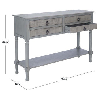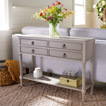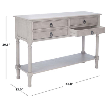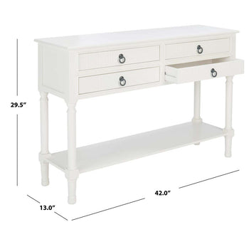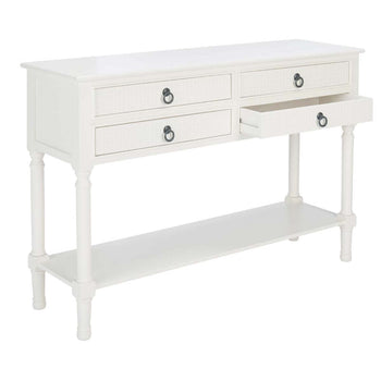 Redefining traditional elegance for today's Decor, this Haines Console Table brims with ageless style. Haines refreshes timeless carved details with a clean white finish and four subtly textured drawers, making it ideal in any classic contemporary hall or entryway.