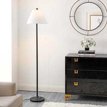 A must-have for today's classic-contemporary interiors, this Hallie Floor Lamp is ideal for virtually every style of Decor. Hallie's understated matte black body and circular base seamlessly accent any room, and an off-white empire shade completes the look.