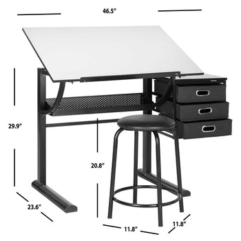 A marvel of modern engineering, the Harvard writing desk and stool work efficiently in residential or commercial workspaces. With adjustable top for art and drafting, three drawers and a cool contemporary vibe, this set delivers style in a small package.