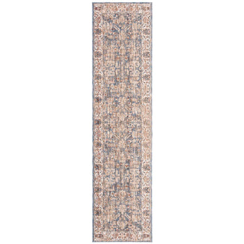 Introducing our exquisite Light Blue/Ivory Traditional Runner Rug ? the perfect blend of classic style and modern functionality. Crafted with precision on a power loom, this 2' x 8' runner rug boasts a low profile with a pile height of a mere 1/4 inches, ideal for high-traffic areas and fitting seamlessly under doors.