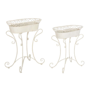 Inspired by rustic French Provencal style, these chic Hendrick Planters transform any garden, outdoor living area, or porch into a floral haven. Crafted with the gorgeous curves and scrolls of artistic ironwork, its neutral pearl white hue makes it a classic.