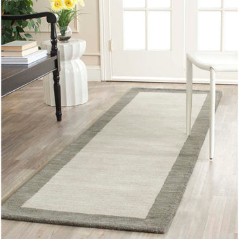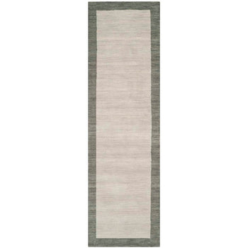 The subtle beauty of this runner lies in its minimalist design, featuring clean borders of dark grey that accentuate the serene light grey field. The simplicity of the pattern allows for versatility, making it an ideal complement to any interior style from modern to traditional.