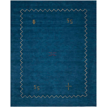 Measuring 2'-3" x 10', the rug is perfectly proportioned to line your hallway or accentuate any narrow space within your home. The rich, deep blue hue serves as a sophisticated backdrop, complemented by subtle, yet striking pattern details that are sure to capture the eye and ignite conversation.