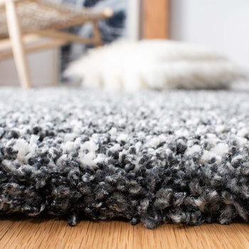 The rug features a captivating blend of dark grey and ivory hues, creating a harmonious contrast that will complement a wide range of interior styles. The pattern visible in the image showcases a subtle, speckled design that exudes a modern aesthetic while providing a versatile backdrop for your furniture.