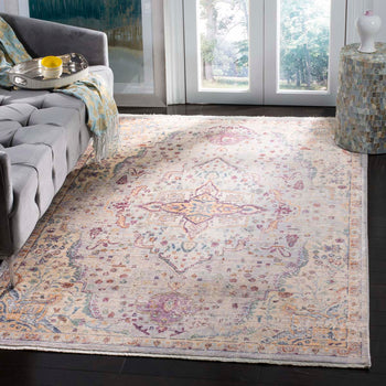 Elevate your interior with the timeless elegance of our Small Rectangle Area Rug, the perfect blend of traditional charm and contemporary sophistication. Sized at a versatile 3' X 5', this exquisite piece brings a subtle pop of color to your space with its delicate lilac and light grey tones.
