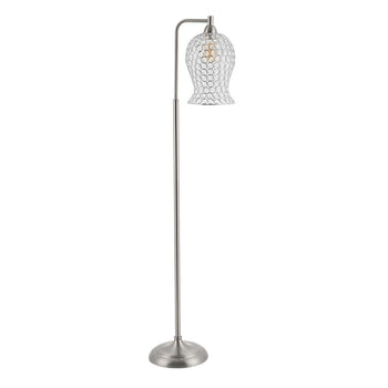 Give your Decor a hint of sparkle with this Izzy Floor Lamp. Izzy's delicately inverted, faceted bell cloche shade dramatically updates a classic silhouette, pairing beautifully with the brushed nickel finish on its sleek iron body.