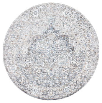 Introduce timeless elegance into your home with this exquisite 5'-3" X 5'-3" Round area rug. The harmonious fusion of grey and blue hues creates an inviting atmosphere, setting a tranquil yet sophisticated tone in any room.