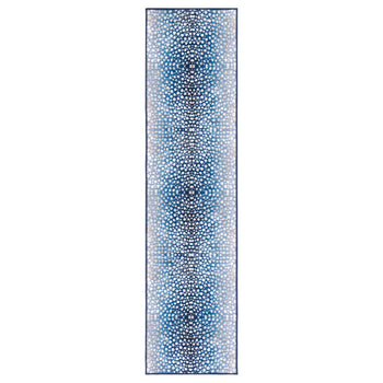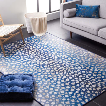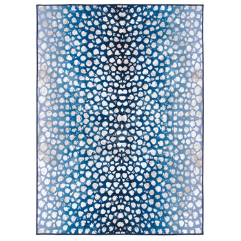 Crafted from durable polyamide, this rug offers both beauty and practicality. The navy and beige color palette creates a striking contrast that enhances the rug's unique pattern, reminiscent of organic shapes and watercolor effects, lending itself to a variety of interior styles.