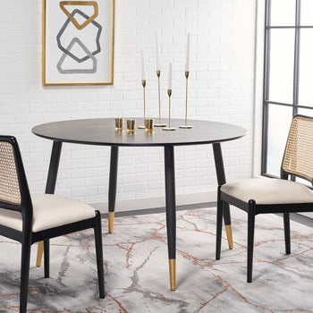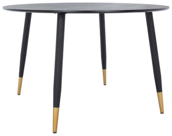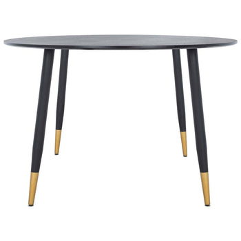 Dine in distinct decadence with this beautiful Kamala Dining Table. The epitome of contemporary sophistication, Beck's jet black frame provides dramatic and glamorous contrast to the shimmer of its gold-capped legs, making a bold modern statement in any Decor.