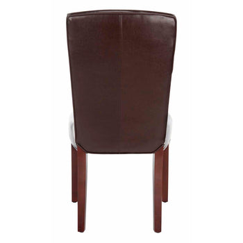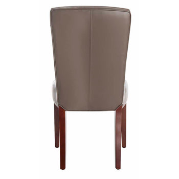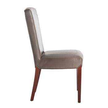 Clay colored leather and a cherry mahogany finish on the legs give the Ken side chair a masculine edge that's softened just enough with outline detail on the backrest and round legs.