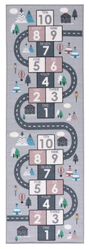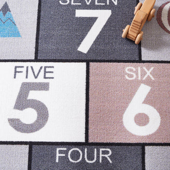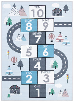 Taking inspiration from the image, the playful roadway and number block pattern ignite imagination and learning. It can double up as a fun game board for playtime activities. Made in Turkey, this rug represents a blend of quality craftsmanship and whimsical design, making it an ideal choice for nurseries, playrooms, or any child's bedroom.
