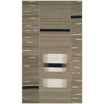 Drawing inspiration from modern aesthetics, the rug features a distinctive pattern with a symmetrical arrangement of block motifs in shades of black, white, and beige, punctuated with delicate white lines that bring a unique visual rhythm to the design. The pattern showcases an artistic blend of simplicity and sophistication, making it a versatile choice for both contemporary and traditional settings.