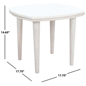The Lara Side Table is a striking study in mixed media craftsmanship. A clean white marble top is paired with tapered acacia wood legs in a rich walnut finish, bringing both an airy ambiance and deep warmth to any Decor. Lara is often used in pairs to frame a sofa, elevating any room's aesthetic.