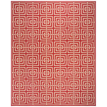 The rug features a geometric pattern that exudes a contemporary vibe. The interlocking design adds an element of sophistication and depth to the rug, making it a visually stunning piece that complements a variety of decor styles.