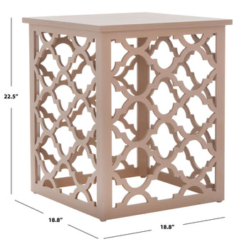 Inspired by intricate Moroccan architecture, the open taupe lattice of this Lonny End Table brings an airy feel to any living space. Lonny’s clean-lined rectangular shape beautifully contrasts its curved quatrefoil pattern, creating decadent visual intrigue.