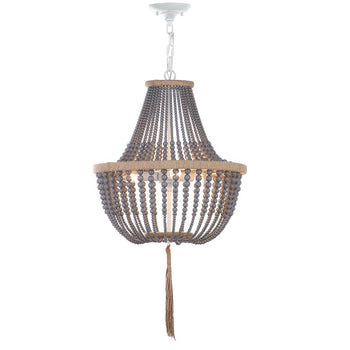 A beautiful blend of boho chic style and eclectic elegance, this Kristi Pendant Light casts a calm glow in any decor. Kristi's strands of grey beads create a striking silhouette that gives any room a sense of airiness with its artistic negative space, while its natural woven tassel and details add a whimsical touch.