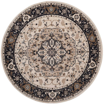 Featuring an intricate pattern inspired by classic design, this rug showcases a harmonious blend of cream and navy tones, adding visual interest and a regal feel to any setting. The dual-color palette makes it a versatile choice for pairing with a wide range of decor styles, from traditional to contemporary.