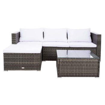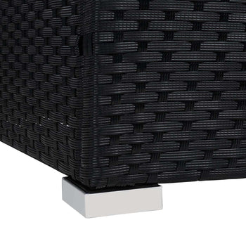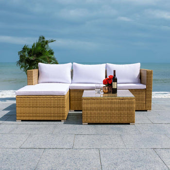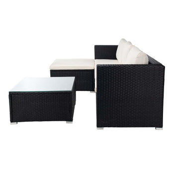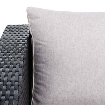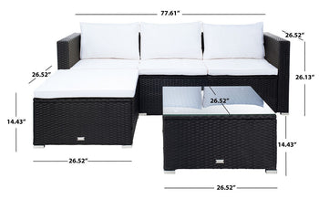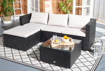 Styled to bring the cozy living room to outdoor lounging, the Madalina Living Set invites you to soak up the sun in luxury. Madalina's plush light grey cushions and black frames blend seamlessly with any porch or patio Decor, transforming your backyard into a beachside resort. Includes a glass-topped black coffee table.