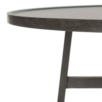 Crafted for versatility, this contemporary end table instantly updates any modern interior with its spin on vintage style. Finished in a light grey palette, its smooth circular top is paired with a sculptural iron base for a signature designer touch.