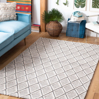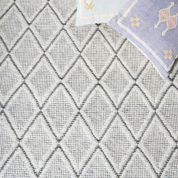 The rug boasts a modern geometric diamond pattern that lends a contemporary chic vibe. Its low profile with a pile height of 1/4" makes it ideal for placement under furniture or in high-traffic areas, blending style with practicality.