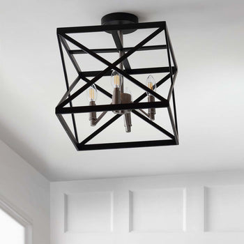 Update any living room, bedroom, or dining room with this stunning flush mount ceiling light. Its versatile design blends the beautiful glow of a chandelier with contemporary geometric style. Crafted with metal, its sleek black finish blends beautifully into any Decor.