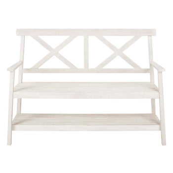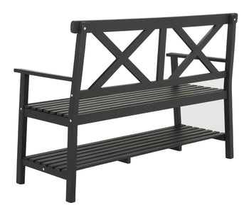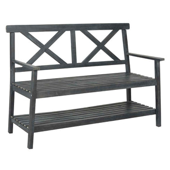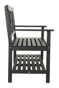 Transform any outdoor area into a luxe retreat with this black 49.21 inch outdoor bench. Inspired by the outdoor furnishings used at New England's top bed and breakfast, its classic design is crafted with acacia wood and features ample storage underneath.