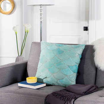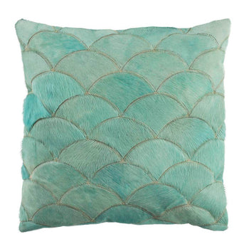 This fashion mod Metallic Scale Cowhide Pillow displays high touch texture and vibrant color. White and silver accentuate the soft, furry look of the scalloped, natural cowhide stitching. A suede back with a hidden zipper makes for easy access care in this exceptional throw pillow for contemporary living rooms, family rooms or master suites.