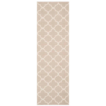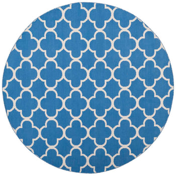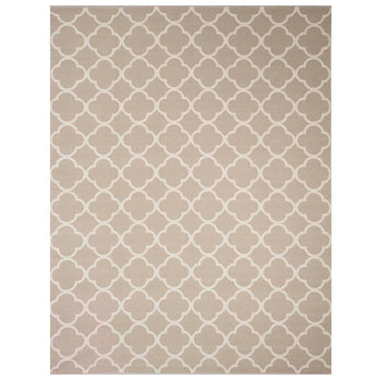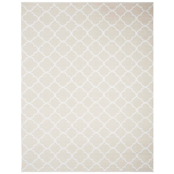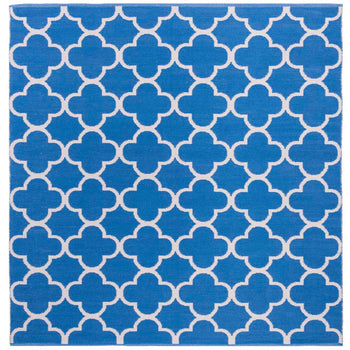 Adorned in a soothing palette of BLUE and IVORY, the rug presents a classic geometric pattern. This lattice design creates a sense of harmony and sophistication that can complement a variety of interior styles, from contemporary to traditional.
