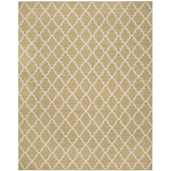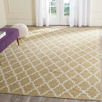 Introducing our exquisite hand-woven accent rug, a testament to the timeless craftsmanship of Indian artisans. Sized at a versatile 2'-3" X 3'-9", this charming piece is the perfect addition to any space in need of a splash of elegance and comfort. The rug features a compelling quatrefoil pattern that exudes classic charm and symmetry. Its soothing green and ivory color palette adds a serene touch to your decor, complementing various styles from traditional to contemporary.