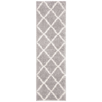 This rug exemplifies modern sophistication in a classic grey and cream color palette, incorporating a timeless pattern that features an elegant lattice design. The contrasting hues create a harmonious blend that will complement a wide range of home decors, from contemporary to traditional.