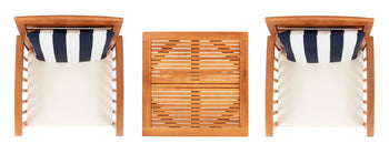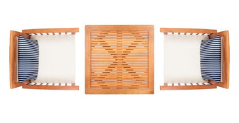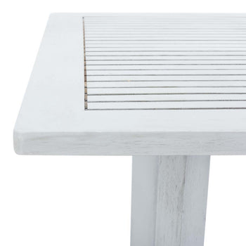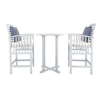 The hottest rooftop bar in Palm Springs inspired this 3 piece bar set. Crafted in a neutral natural, its contemporary 39.8 inch table and sleek matching chairs with modern white upholstery lend instant bistro style to any outdoor terrace or entertaining area.