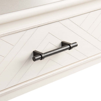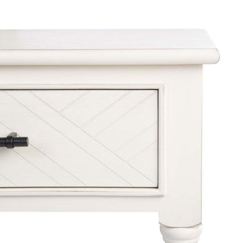 Understated yet sophisticated, this Peyton Accent Table is ideal for today's classic contemporary decor. Peyton's timeless turned legs and carved wooden accents are given a modern touch with the oversized herringbone pattern on its drawer, while a distressed white finish is perfect for any room's color scheme.