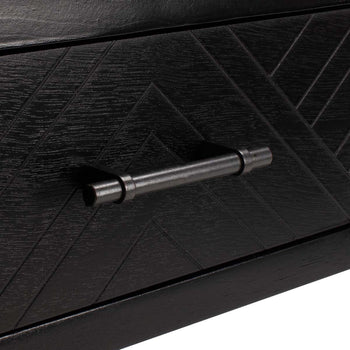 This Peyton Console is at once understated yet sophisticated, making it ideal for today's classic contemporary decor. Peyton's open bottom shelf provides ample display space, while the oversized herringbone pattern on its three drawers gives a modern touch to Peyton's carved wooden accents.