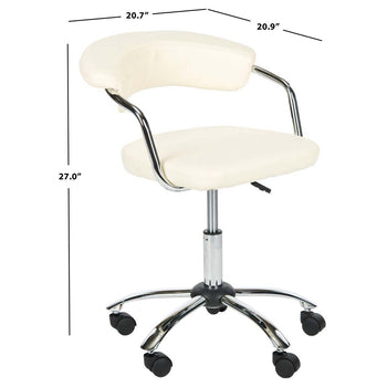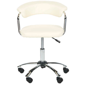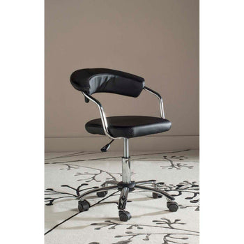 It's a mod, mod world. And the Pier desk chair brings a dose of contemporary style to the home office with its rolled open back, ample seat and sleek armrests. Crafted with plastic wheels for easy mobility and upholstered in black synthetic leather, it's adjustable and built to withstand the daily grind.