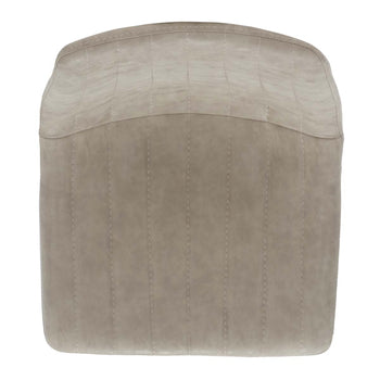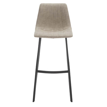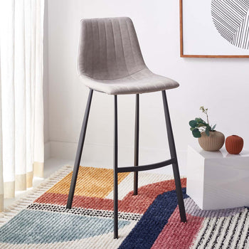 Experience the high life with this exceptional Rhyatte Barstool. Exposed cross stitch details give an added layer of decorative depth to the subtle channel tufting on Rhyatte's smooth cognac vegan leather, perfectly balanced by the stark angles of its black iron base.
