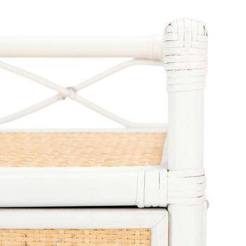 Chinoiserie-chic goes coastal cool in this Rumi Nightstand. Rumi's clean angles and subtle curves are highlighted by its wood and rattan details, making it perfect for giving any bedroom a touch of exotic flair.
