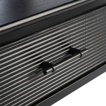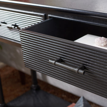 This Ryder Console Table brings a touch of tradition to today's contemporary decor. A classically designed frame is upgraded with fashion forward flair in the striated details on Ryder's two drawers, while the sleek finish gives additional decorative depth to the hall or entryway.