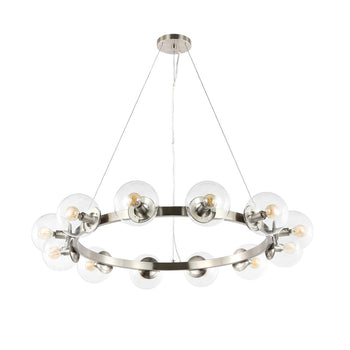 Bring a refined touch of luxury to your home with our Rylian chandelier. Suspending a clean and classic metallic ring, our chandelier sets the tone for a refined and timeless ambiance. Its gleaming brass finish is perfectly complemented with clear glass orbs to keep the look classy and glamorous. Each glass shade creates a stunning display of the bulb to deliver a warm and inviting ambiance. Our stately chandelier includes 8 lights to beautifully illuminate an entryway, dining room, or living area.