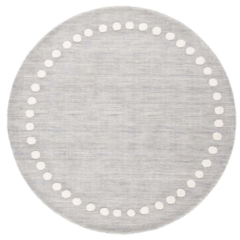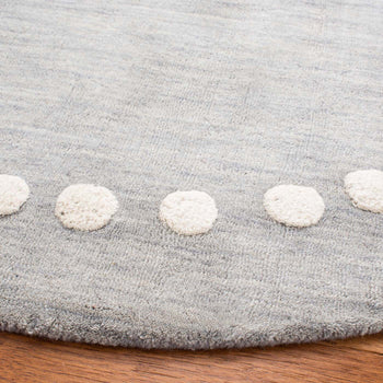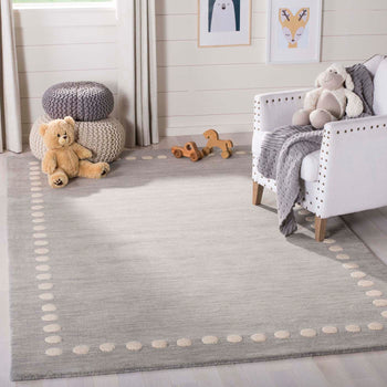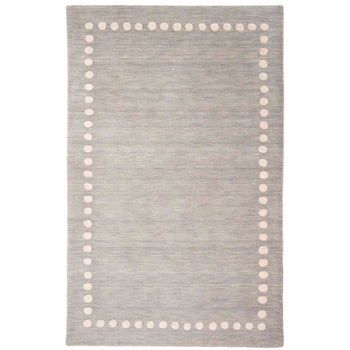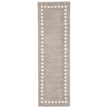 Elevate your space with the understated elegance of our hand-loomed wool runner rug. Crafted with care in India, this 2-foot 6-inch by 8-foot runner showcases a graceful grey backdrop complemented by a symmetrical pattern of ivory dots along the borders, exuding a contemporary yet timeless appeal. With a comfortable 5/8-inch pile height, it offers a plush feel underfoot. Ideal for hallways or narrow spaces, this refined piece brings both comfort and style to your home decor.