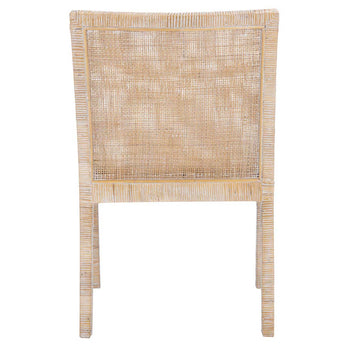 An icon of seaside style, this Sarai Accent Chair gives any Decor a breath of tropical fresh air. Sarai's grey whitewash cane frame is beautifully highlighted by its smooth white cushion, and capped legs add a subtle sense of decorative depth.