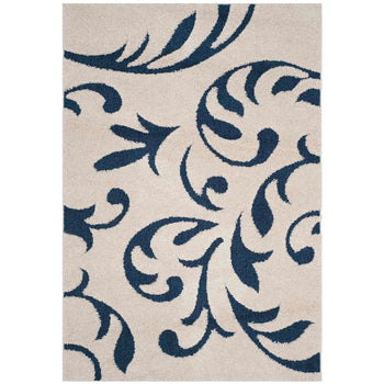 Introducing our elegant and luxurious accent rug, expertly crafted in the size of 2 feet 3 inches by 4 feet, to effortlessly complement any space in your home or office. This distinguished piece showcases a sophisticated cream and blue color palette, exuding serenity and poise.