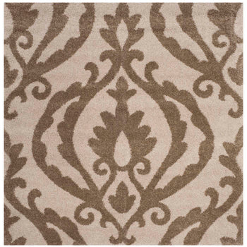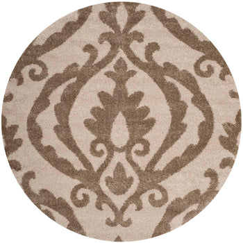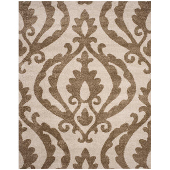 Adorning this exquisite piece is a timeless pattern evocative of classic design and sophistication. The intricate damask-like motifs in a contrasting beige hue create an alluring focal point, making this rug an exceptional choice for those looking to infuse their interiors with an element of traditional charm mixed with modern comfort.