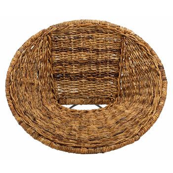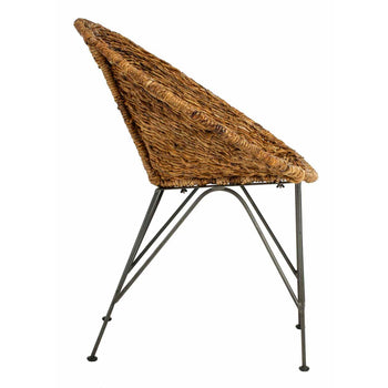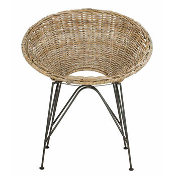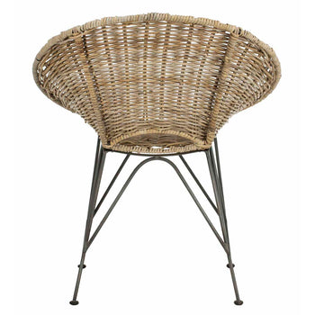 Bring designer style to the living room with this contemporary rattan accent chair. A blend of chic modern geometric shapes and natural materials, its luxurious grey wash finish and rich dark steel legs blend into any décor. An instant everyday escape.