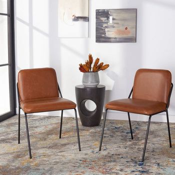 A contemporary twist on Mid-Century furnishings, this Taddeo Side Chair perfectly suits any Decor. Hairpin-style legs give a touch of airiness to Taddeo's smooth light brown PU leather and transitions from den to dining room with elegant ease. Sold in sets of two.