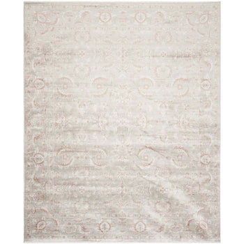 The rug features a sophisticated grey and ivory palette, seamlessly blending with a variety of decor styles. The traditional pattern, with intricate floral motifs and decorative borders, exudes a sense of classic charm and refined taste. The hand-loomed construction ensures each detail is thoughtfully created, offering a unique piece that's both durable and stylish.