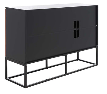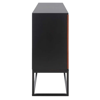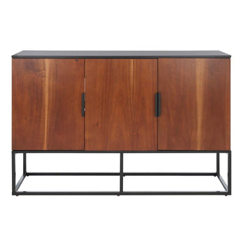 Warm Up Any Corner Of Your Home With Our Elegant And Charming Vance Sideboard. The Modern And Clean Lines Of Our Sideboard Are Enlivened With Rich Organic Grains Of Wood. It Is Elevated Upon A Rectangular Black Metallic Base To Lend Industrial Charm To Your Home. With Minimal Inserts, Our Sideboard Makes A Warm And Sleek Statement In Any Room. It Is Crafted With Mahogany Wood With Three Roomy Cabinets To Become A Handy And Durable Buffet, Office Cabinet, Or Media Unit. Each Cabinet Holds Two Adjustable Shelves To Customize Storage According To Your Needs.