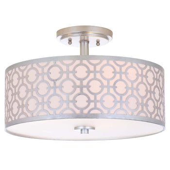 Designed to recall the luxurious Beverly Hills hotels hideaways of Old Hollywood's elite, this decadent modern flush mount ceiling lamp is the star of any space. Crafted in brass, is delicately carved pattern boasts a rich finish for instant drama.