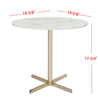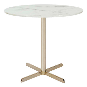 Ideal for a cocktail or an espresso, this contemporary round side table elevates any living room with its refined minimalist style. Designed with sleek brass and white marble finishes, its rich blend of textures and clean lines make it a new classic.