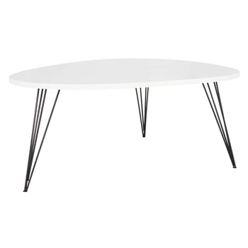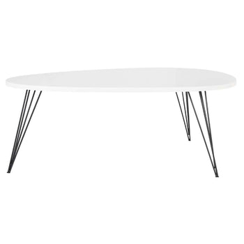 Give your living room a high end designer look with the dramatic elliptical shape of this Wynton Coffee Table. Inspired by Mid Century classics, this striking piece pairs a sleek black lacquer top with three sets of black iron hairpin legs.