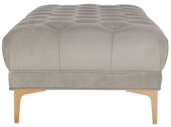 Create an instant oasis in any living room with this decadent tufted rectangular bench. Extravagant yet versatile, its sumptuous grey velvet upholstery is paired with a classic brass finish on chic modern legs. Use it as a coffee table or extra seating.